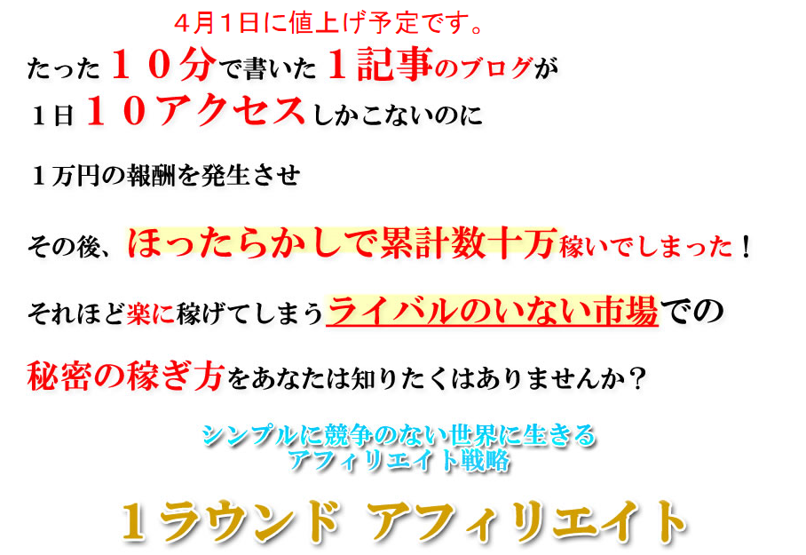 「1ラウンドアフィリエイト」は、ライバルのいない市場で戦うアフィリエイト手法です。