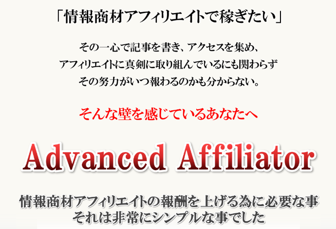| 正式名称 | 情報商材アフィリエイトの売上げと成約率をアップする!「Advanced Affiliator」 |