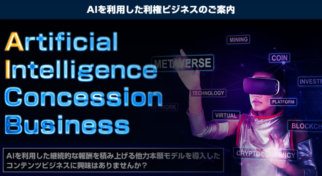 「AI Concession Business」は、AIを利用して構築する他力本願モデルを導入したコンテンツビジネスです。