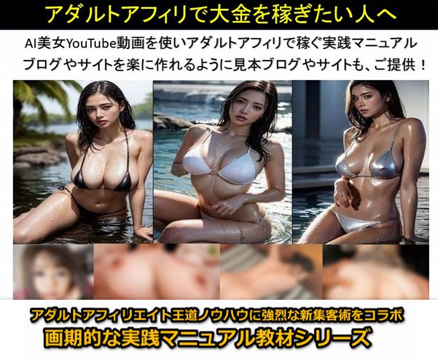 「AIYouTubeアダルト・アフィリエイト」は、“ブログ×サイト×YouTube”といったアダルトアフィリエイトでは異色の手法とも言うべき革新的スタイルを採用したアフィリエイト教材です。