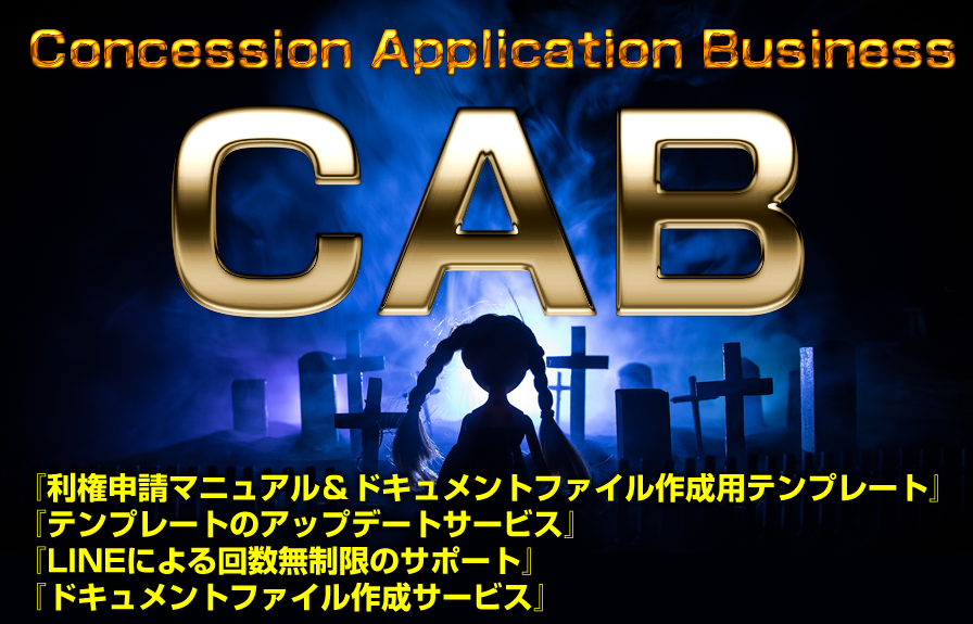 「CAB(Concession Application Business)」は、スマートフォンやPCから「グーグルドキュメント」を使って規定のドキュメントファイルを作成して申請していく利権ビジネスです。