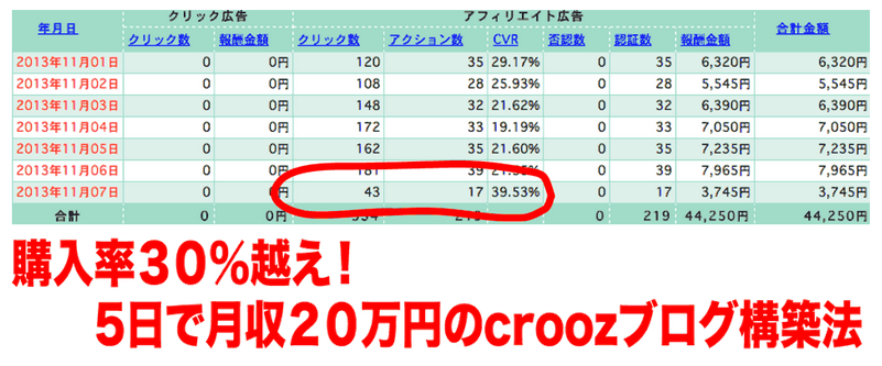 | 正式名称 | 購入率30%越え!5日で月収20万円のcroozブログ構築法 |
