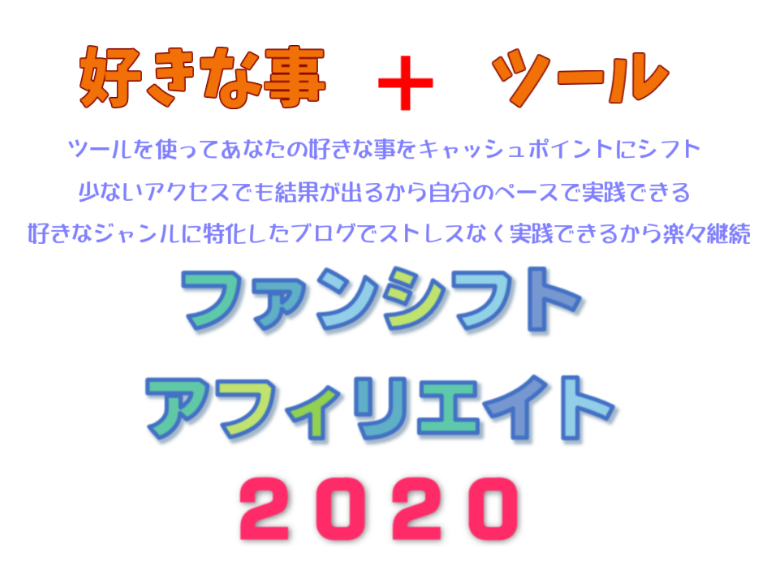 「ファンシフトアフィリエイト2020」は、好きな事をキャッシュポイントに繋げてしまうアフィリエイトノウハウです。