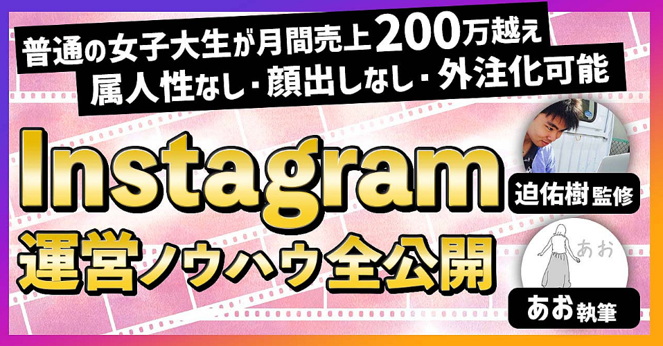 「インスタのアカウント設計から収益化までの全ノウハウ」は、ごく普通の女子大生が安定して月に100万円〜200万円稼ぐに至ったインスタアフィリエイトノウハウです。