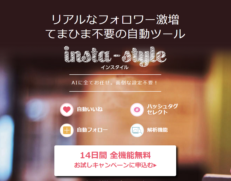 「insta-style(インスタイル)」は、いいねやフォロー、コメントなどの最適なアクションをすべておまかせできるインスタグラム自動ツールです。