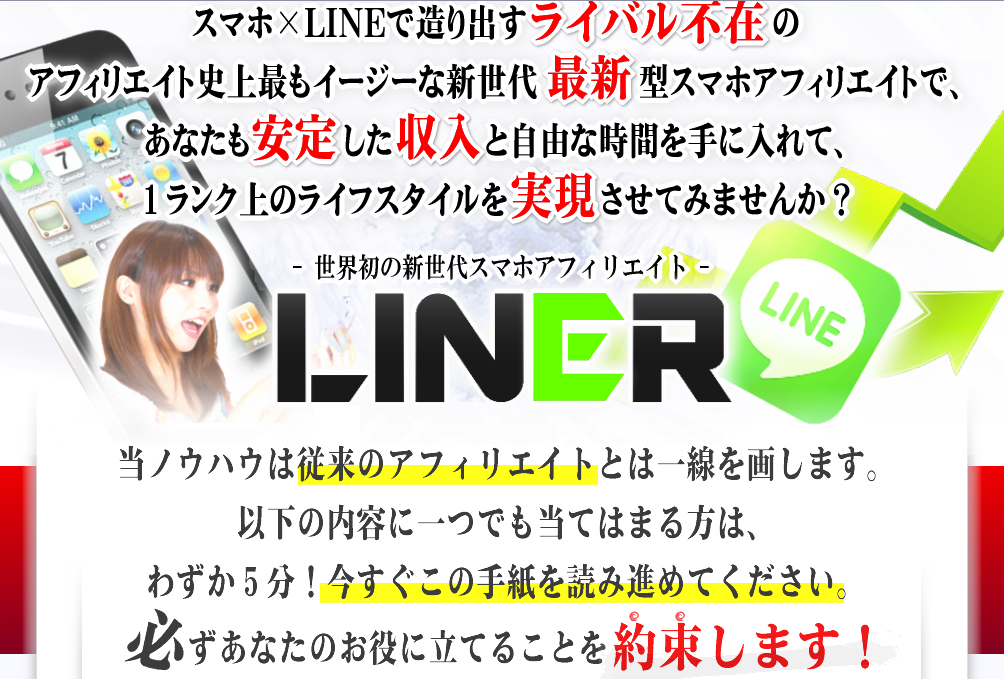 LINERはメルマガ・ブログ・サイト・SEOといったテクニックを全く必要としませんし、従来のアフィリエイトに比べて爆発的に集客することが可能ですので、初心者の方でも圧倒的に早く成果を出すことができます。