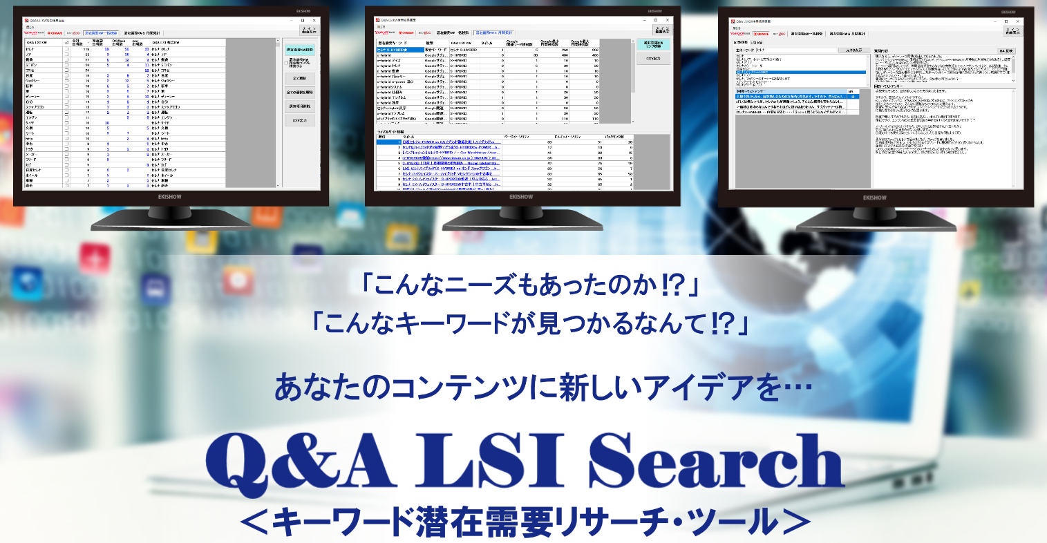 「Q&A LSI Search」は、Q&Aサイトから「潜在的な需要」にフォーカスしたリサーチを行うことができるツールです。
