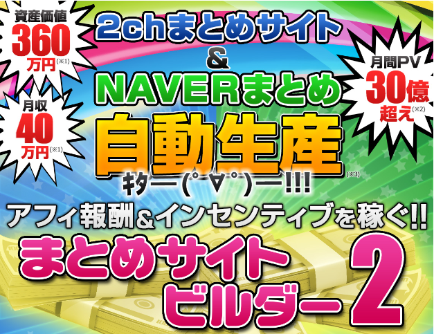 2chまとめサイトとNAVERまとめを自動生産し、アフィリエイト報酬とインセンティブを稼ぐことができます。