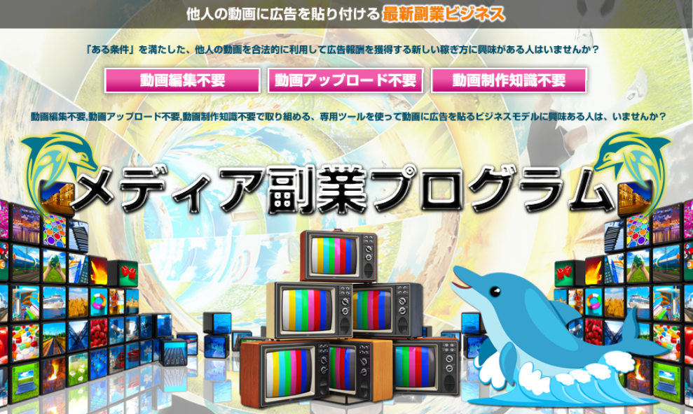「MEDIA副業プログラム」は、合法的に他人の動画と専用ツールを利用して3つの利益を得ていくビジネスです。