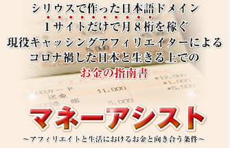 「マネーアシスト」は、シリウスで作った1サイトだけで月8桁稼ぐキャッシングアフィリエイターによるお金の指南書です。