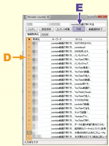 CDのチェックボックスに適当にチェックを入れてEの「作成ボタン」をクリック