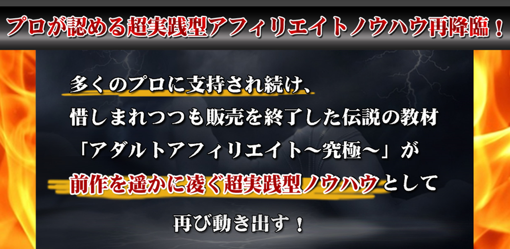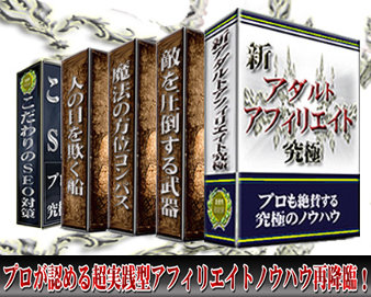 「新アダルトアフィリエイト究極」は、惜しまれつつ販売終了となった伝説のアダルトアフィリエイト教材「アダルトアフィリエイト究極」のバージャンアップ版です。