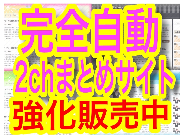 「完全自動2chまとめサイト」は、その名の通り2chまとめサイトで完全自動ほったらかしで運営できるツールです。