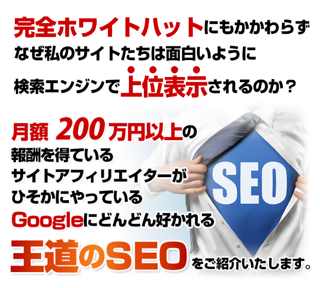 「王道のSEOバイブル」は、Googleに好かれるためのコンテンツ作成のノウハウを学べる完全ホワイトハットなSEO教材です。