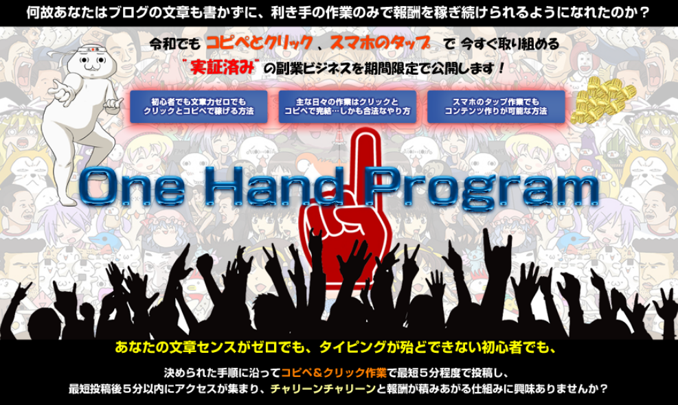 「OHP(One Hand Program)」は、まとめサイトで稼ぐためのノウハウ&専用テーマです。