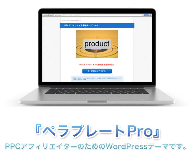 「ペラプレートPro」は、PPCアフィリエイト用のランディングページ(ペラサイト)を効率よく作成することができるワードプレス用テンプレートです。