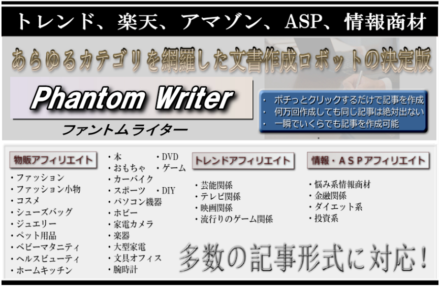 様々のジャンルのアフィリエイト展開なら…『ファントムライター』