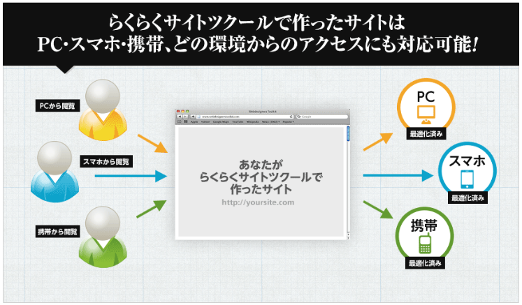 PC・スマホ・携帯サイトの3プラットフォーム同時作成機能を搭載