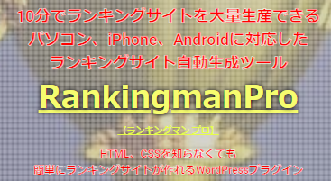 「RankingmanPro」(ランキングマン プロ)は、ランキングサイトを自動で生成できるアフィリエイトツールです。