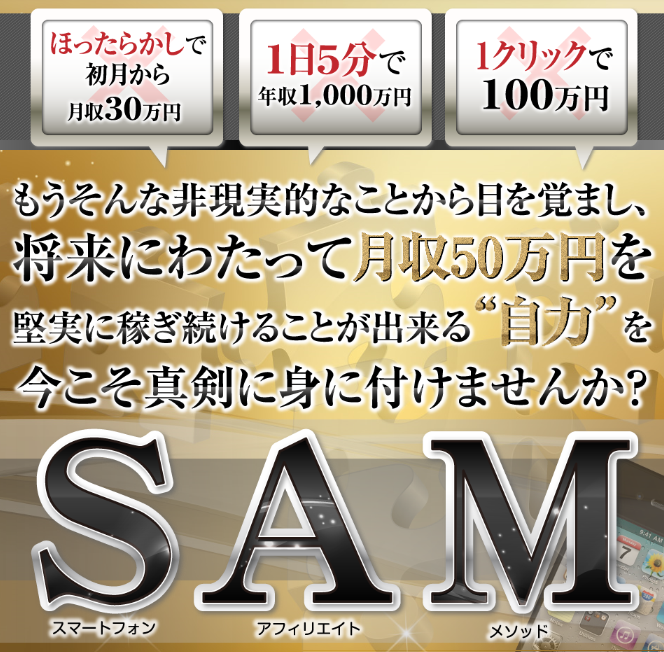| 正式名称 | 月収50万達成の王道メソッド SAM-スマートフォンアフィリエイトメソッド- |