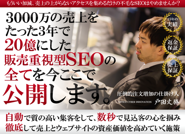 売上に直結するコンテンツを作るその具体的法則と、検索エンジンに真っ当に評価させる具体的手法がみっちり詰め込まれており、まさしく、これが本質の、本当のSEOの全てと言っても過言ではありません。