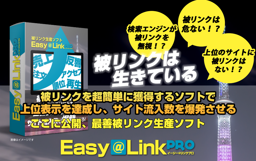 「簡単SEO!EASY@LINK上位版」は、被リンクを超簡単に獲得できるソフトです。