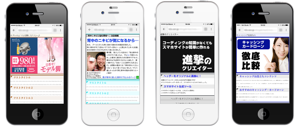 1番の特徴はヘッダーに、スマホサイズの広告案件を入れられること!もちろん、オリジナルで作成した画像を入れ込む事も可能です。