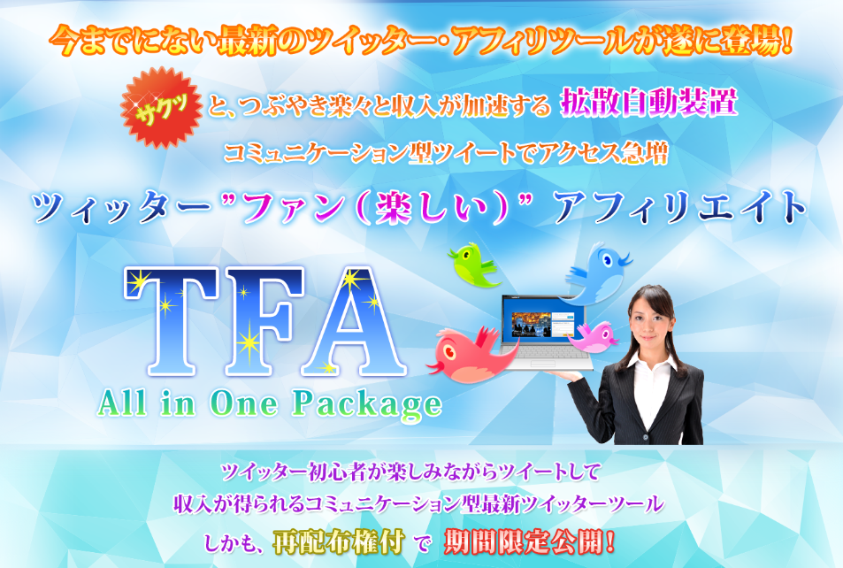 | 正式名称 | ツイッターファンアフィリエイト〜TFA〜【再配布権付】 |