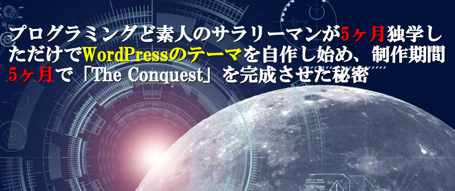 有料テーマ「The Conquest」の制作に使用したファイルやコードを全て公開し、それをあなたもゼロから作成できるように解説しています。