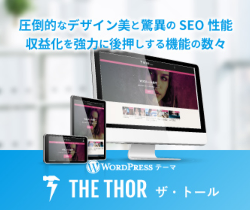 THE・THOR(ザ・トール)は、圧倒的にSEOに強く・抜群に上位表示されやすい“究極のSEO最適化テーマ”です。