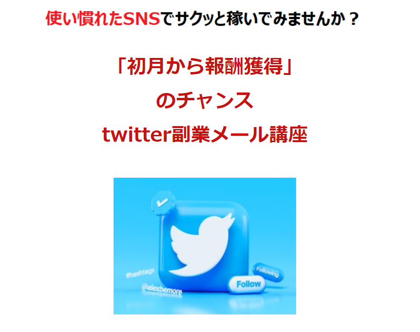 「twitter副業メール講座」は、Twitterで初月から報酬獲得狙えるメール講座です。