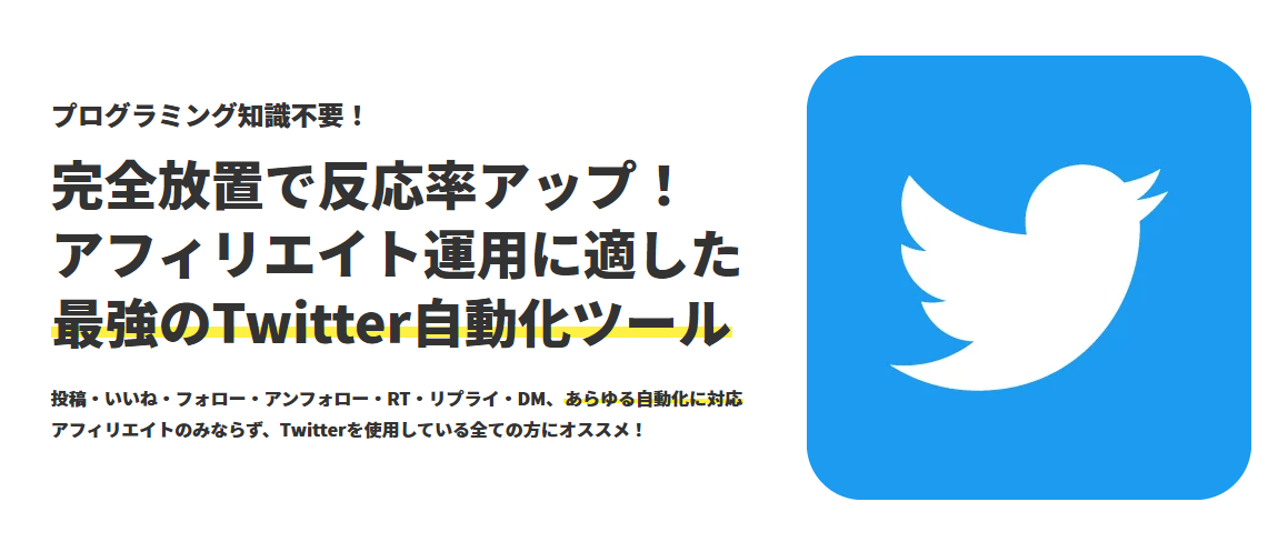 投稿・いいね・フォロー・アンフォロー・RT・リプライ・DMなど、あらゆる自動化に対応し、アフィリエイトのみならず、Twitterを使用している全ての方にオススメできます。