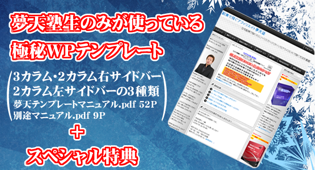 「夢天塾☆ワードプレステンプレート」とは、その名のとおり夢天塾生のみが使用しているというワードプレステンプレートです。