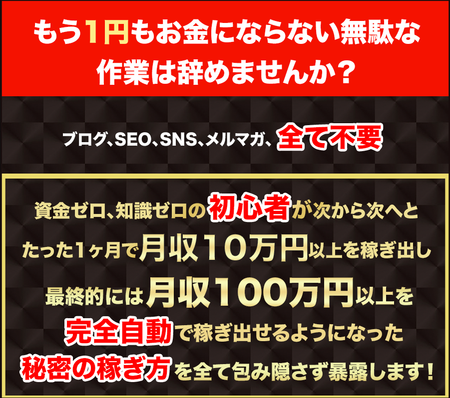 無駄なことは一切書かれていなく、稼ぐことだけに特化した企画ですので、本気でお金が稼ぎたい方はぜひ飛び込んでみてください♪